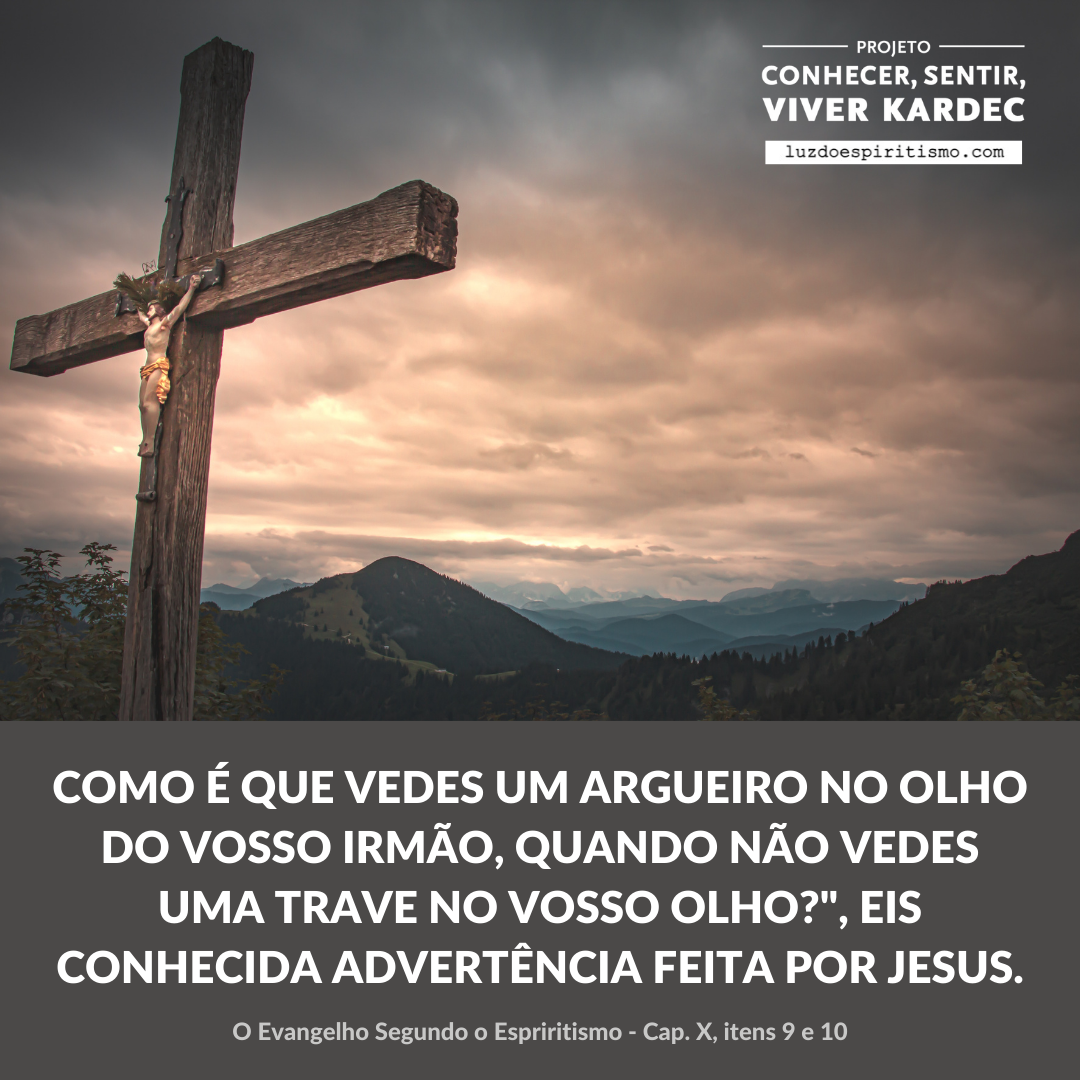 “Como é que vedes um argueiro no olho do vosso irmão, quando não vedes uma trave no vosso olho?”, eis conhecida advertência feita por Jesus. Uma das insensatezes da Humanidade consiste em vermos o mal de outrem antes de vermos o mal que está em nós. Para julgar-se a si mesmo, seria preciso que o homem pudesse ver seu interior num espelho, pudesse transportar-se para fora de si próprio, considerar-se como outra pessoa e perguntar: Que pensaria eu se visse alguém fazer o que faço? Incontestavelmente, é o orgulho que induz o homem a dissimular para si mesmo os seus defeitos.
