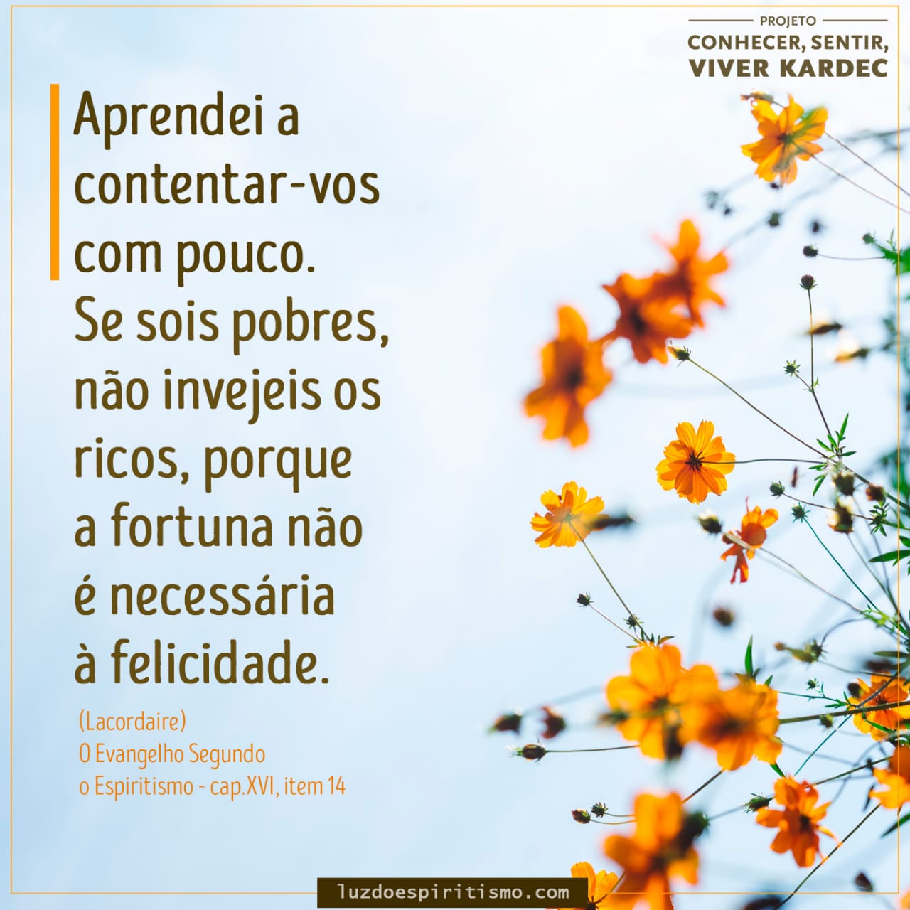 “Eis, meus amigos, o que eu queria ensinar-vos, a respeito do desprendimento dos bens terrenos. Resumirei dizendo: aprendei a contentar-vos com pouco.