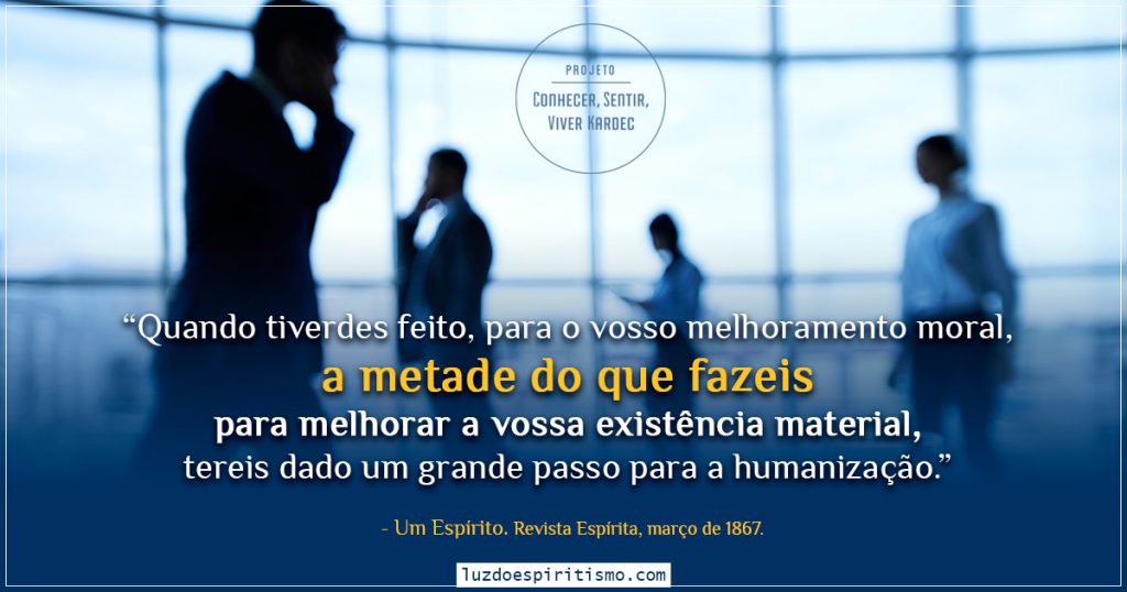 Não nos afastemos de nosso assunto: O Espiritismo bem compreendido é para a vida da alma o que o trabalho material é para a vida do corpo. Ocupai-vos dele com esse objetivo, e ficai certos de que quando tiverdes feito, para o vosso melhoramento moral, a metade do que fazeis para melhorar a vossa existência material, tereis dado um grande passo para a humanização.”