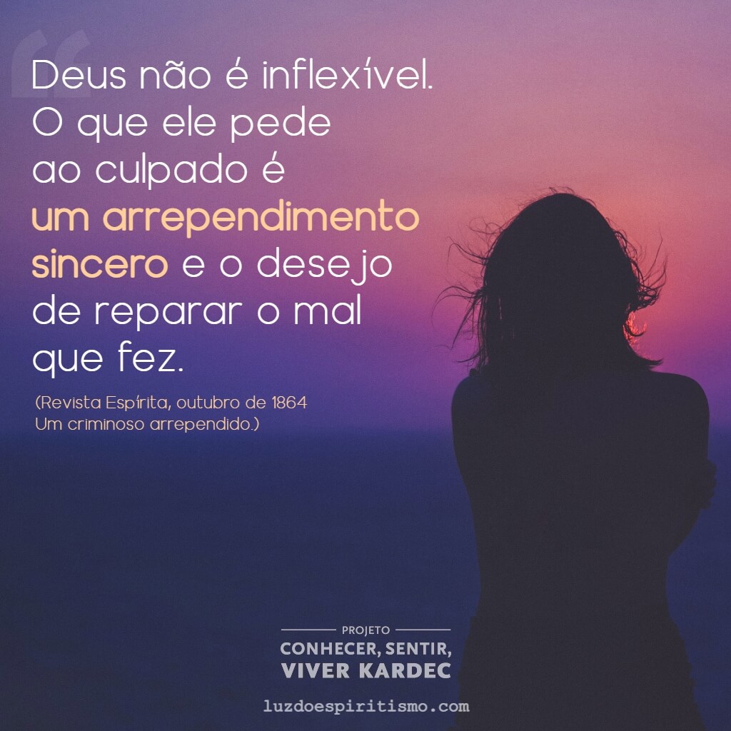 ─ Deus, disseram-lhe eles, não é inflexível. O que ele pede ao culpado é um arrependimento sincero e o desejo de reparar o mal que fez. Considerando-se que o vosso coração não está endurecido e que lhe pedis o perdão de vossos crimes, ele sobre vós estenderá a sua misericórdia, se perseverardes nas boas resoluções para reparar o mal que fizestes.